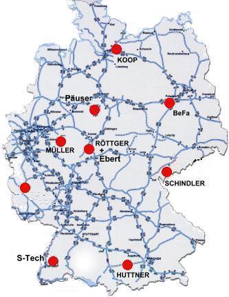 Um genauere Informationen über unsere Service- und Vertriebspartner zu erhalten klicken sie bitte auf die Schaltflächen links neben der Deutschlandübersicht.